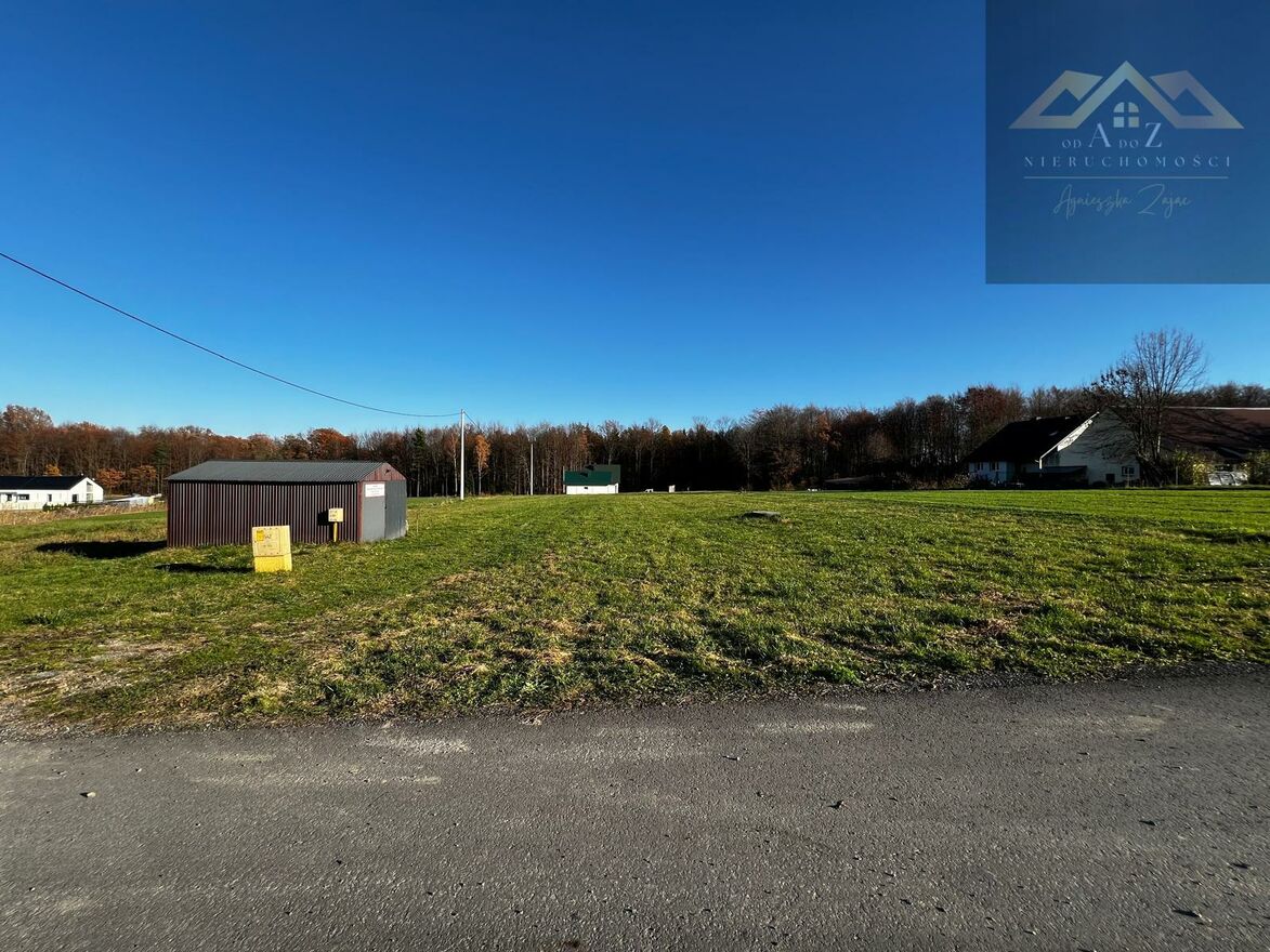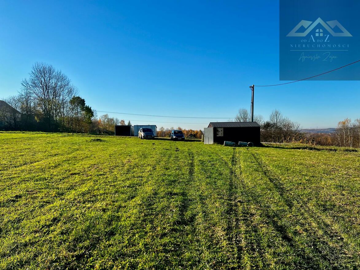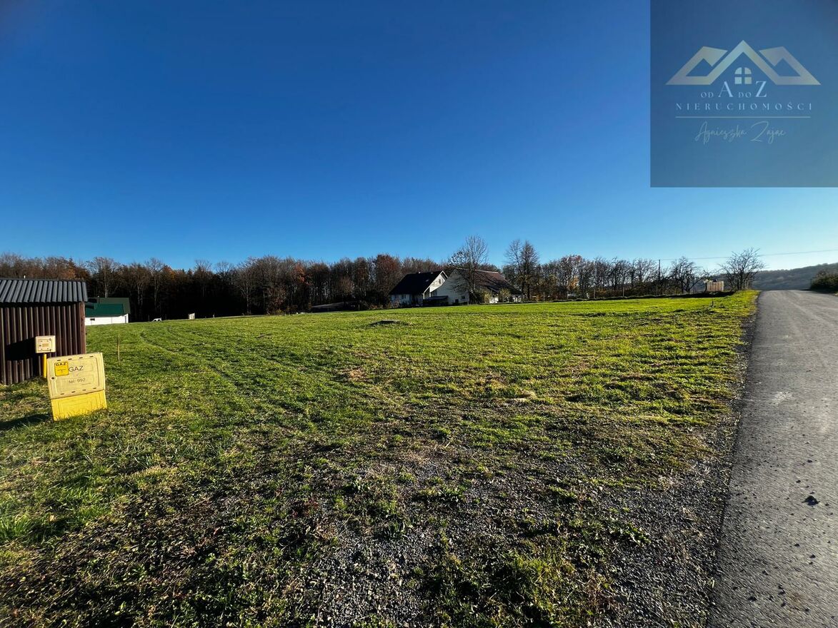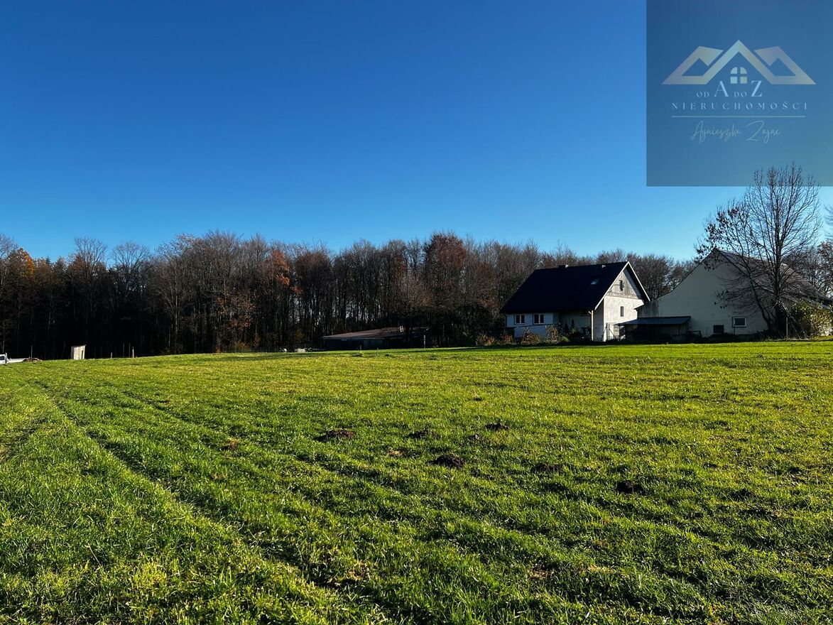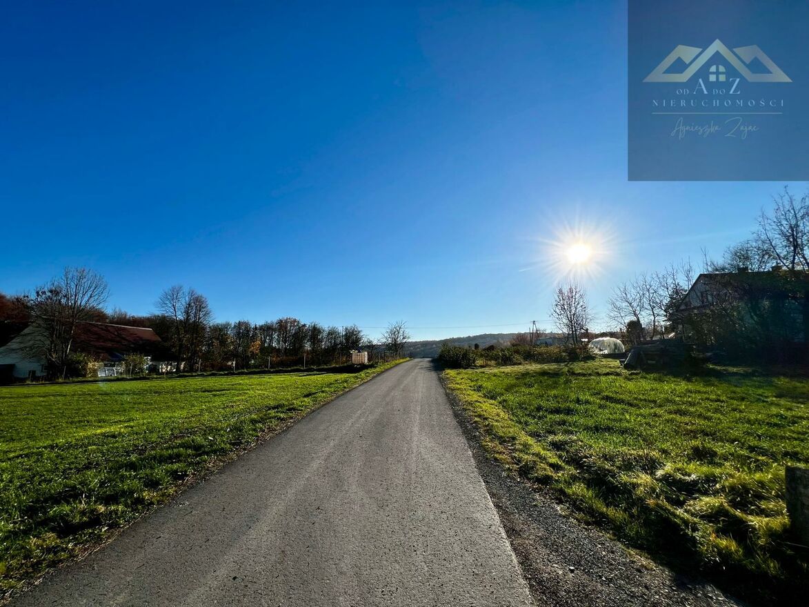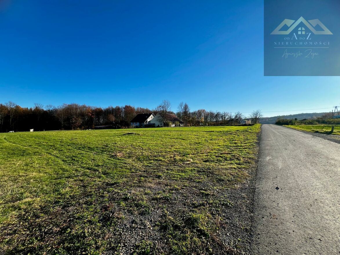Teren ustawny, lekko nachylony, z pięknym widokiem na okoliczne wzgórza idealny pod dom z ogrodem lub siedlisko.